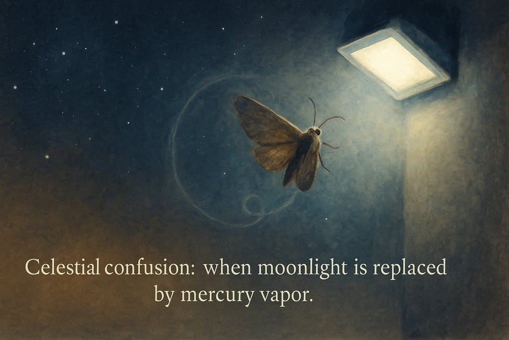 To a moth, our LEDs are deadly siren songs. They're drawn in, disoriented, and often die circling fake moons they were never meant to find.